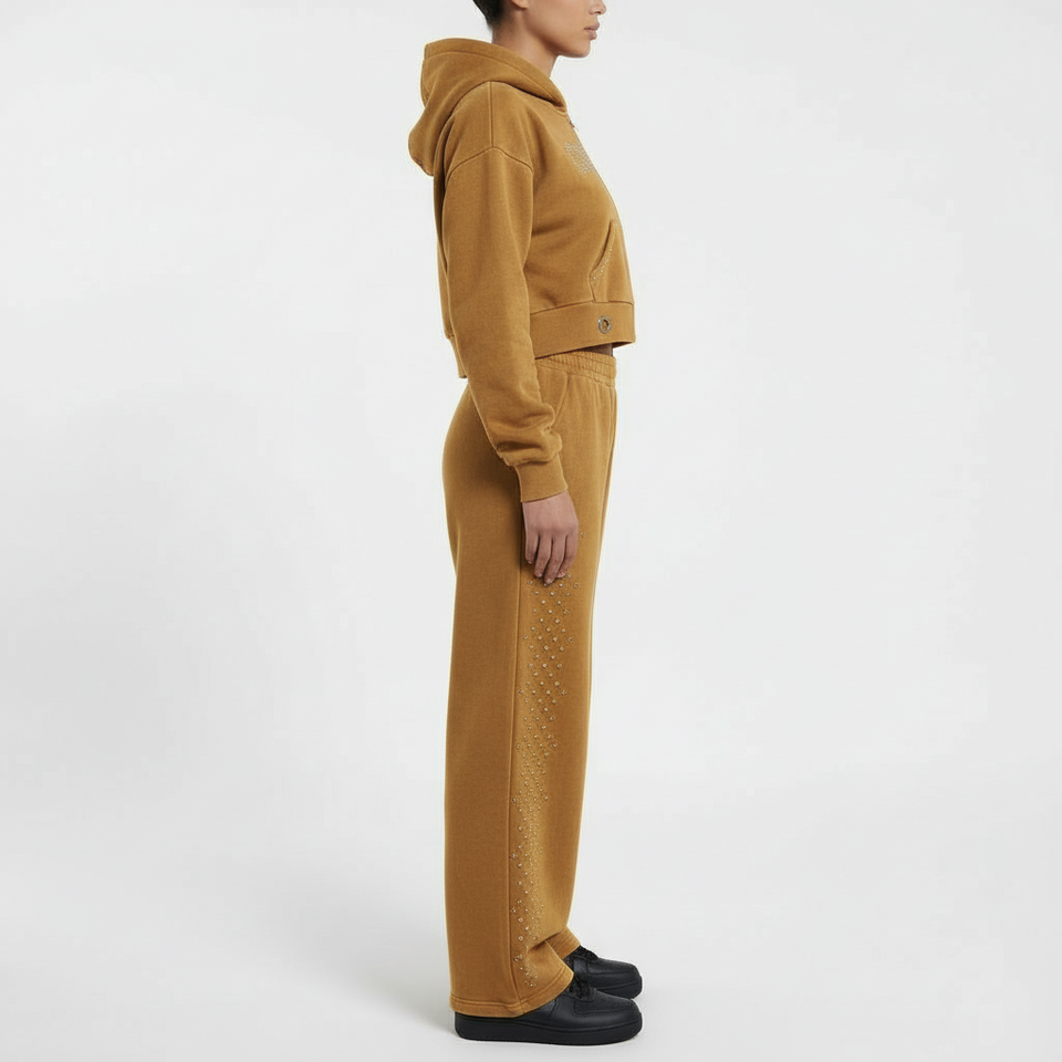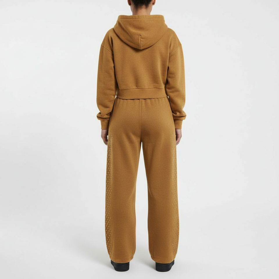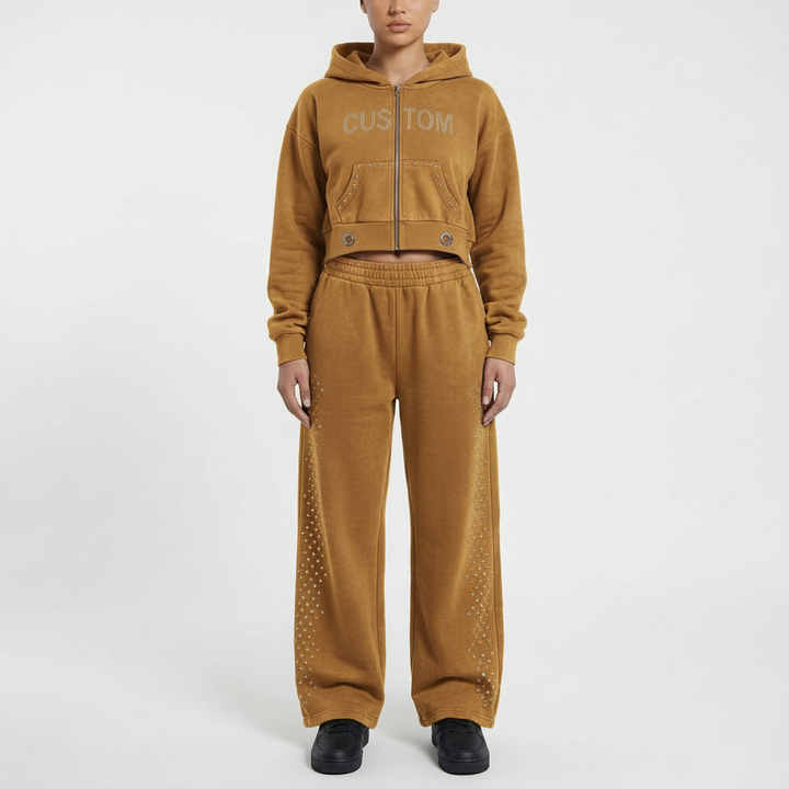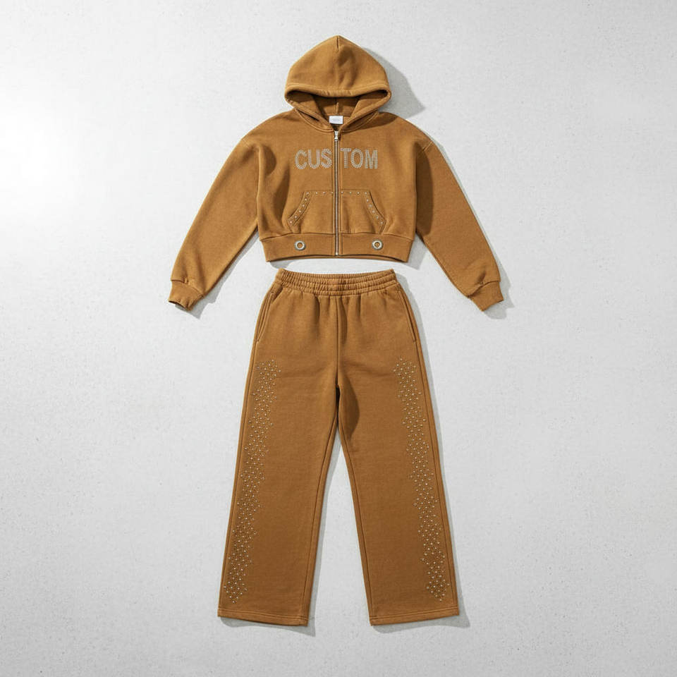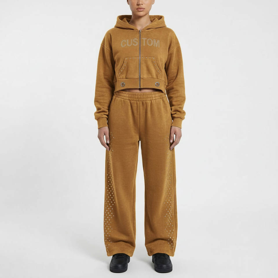 ชุดเซ็ตเสื้อสเวตเชิ้ตและกางเกงสเวตแพนท์ผ้าฝ้ายสีพื้นสไตล์สตรีทแวร์แบบใหม่สำหรับผู้หญิง