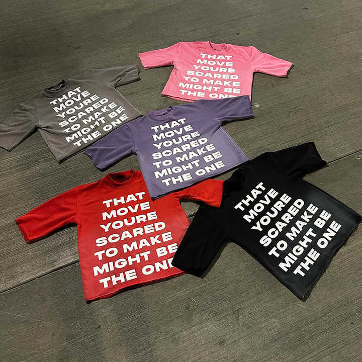New Style Streetwear Screen Printing Graphic T-Shirt for Men Custom Vintage 100% Cotton Washed Men Raw Hem Sunfaded Loose Fit