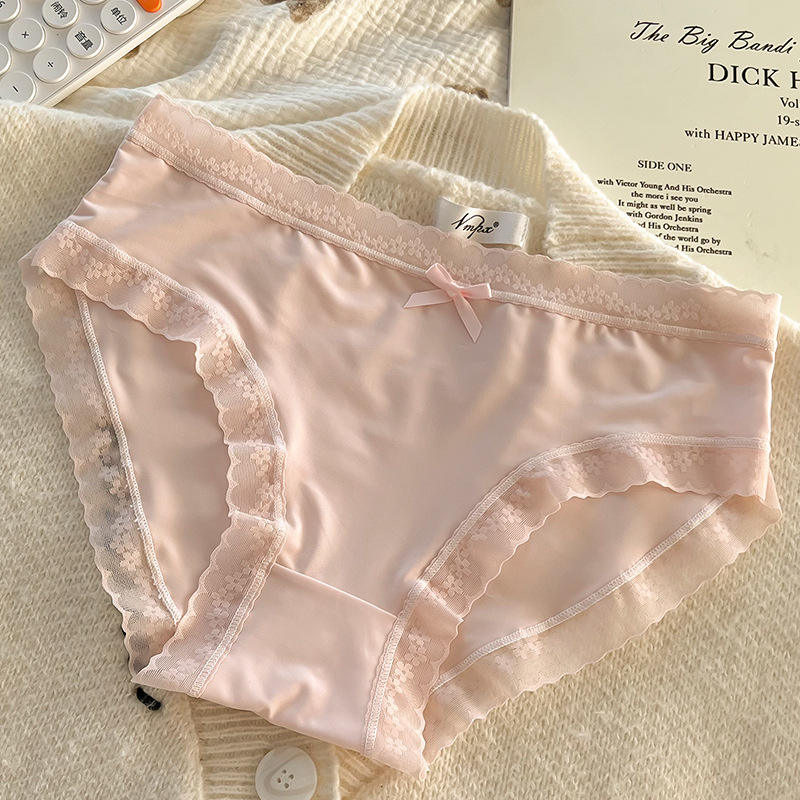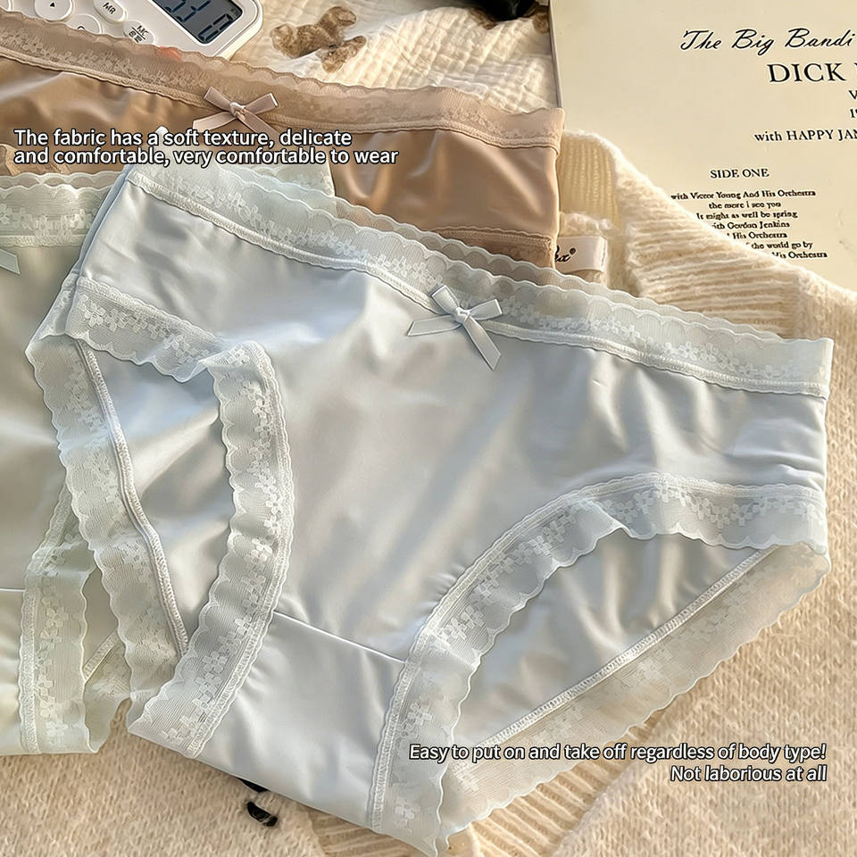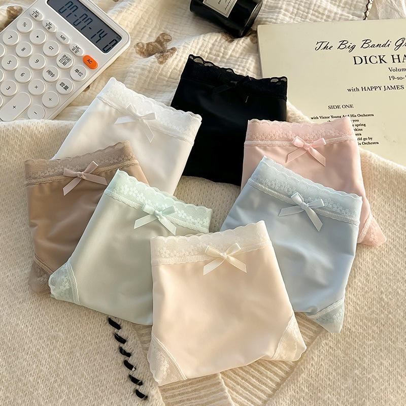 กางเกงในทรงฮิปสเตอร์ผ้าไหมน้ำแข็งถักแบบใหม่สำหรับฤดูร้อน ระบายอากาศได้ดี ผ้าฝ้ายต้านเชื้อแบคทีเรีย เหมาะสำหรับใส่ทุกวัน เอวกลาง สำหรับนักเรียนหญิง