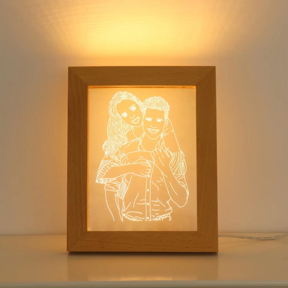 โคมไฟกลางคืนแบบ USB รุ่นใหม่ กรอบไม้ ไฟ LED กรอบรูปไฟฟ้า ไฟบ้านอัจฉริยะ สำหรับอะคริลิค