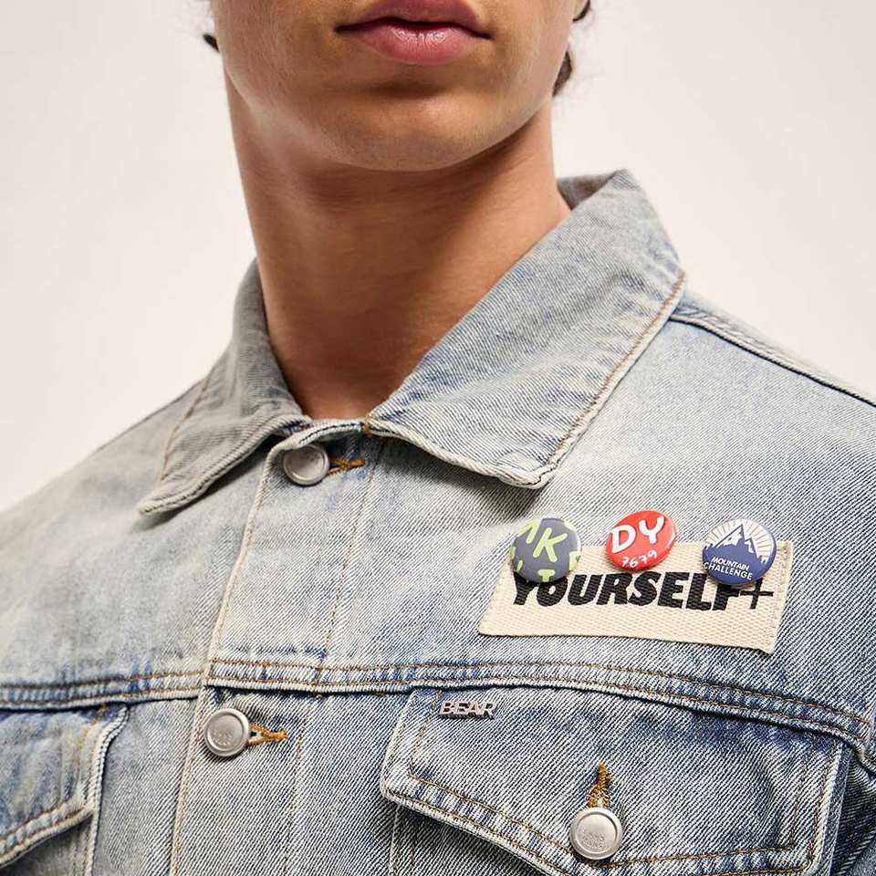 แจ็คเก็ตยีนส์ผู้ชาย ดีไซน์ใหม่ไม่ซ้ำใคร ปกตั้ง ปักโลโก้ด้านหน้า เป็นมิตรกับสิ่งแวดล้อม คุณภาพสูง ผลิตในปากีสถาน