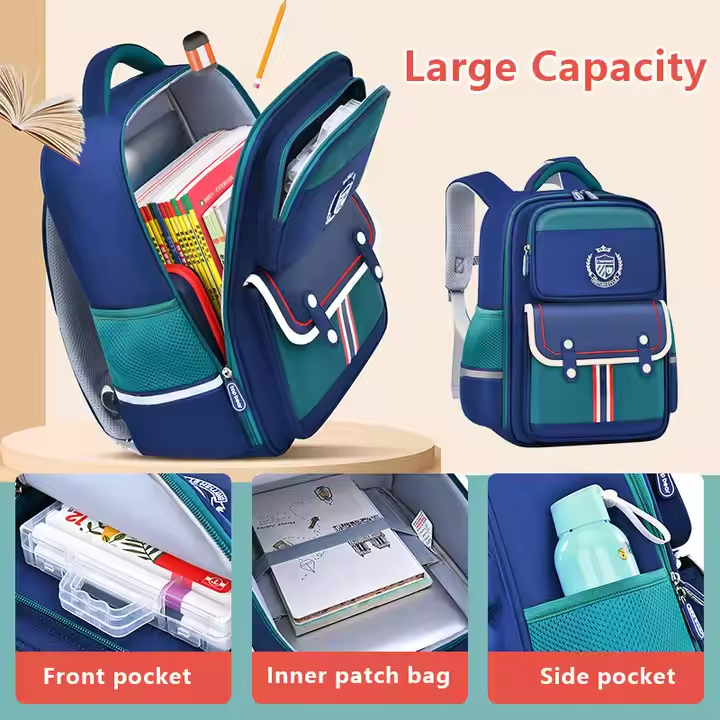กระเป๋าหนังสือแบบใหม่สำหรับวัยรุ่นและนักเรียนประถมกระเป๋าเป้สะพายหลังสำหรับเด็กมีซิปปิดและบุผ้าโพลีเอสเตอร์