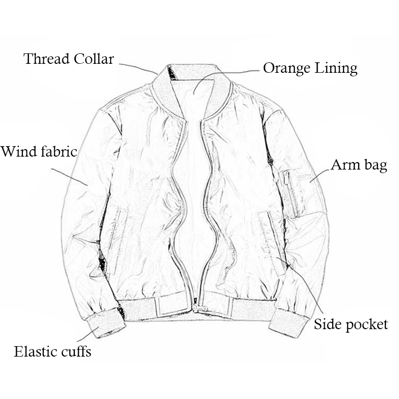 ด้านหน้า, ด้านหลัง, แขนเสื้อด้านซ้าย, แขนเสื้อด้านขวา, ขอบล่าง