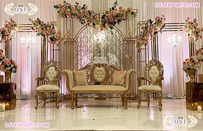 ฉากหลังงานแต่งงานแบบใหม่ ซื้อขาตั้งโลหะสีทองสำหรับตกแต่งเวที โครงโลหะตกแต่งงานแต่งงานคุณภาพสูง
