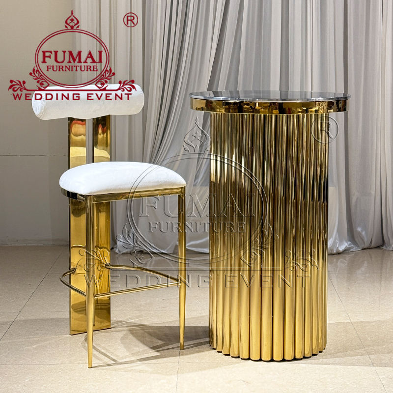 โต๊ะบาร์สำหรับงานแต่งงานทำจากสแตนเลสสีทองประดับกลางโต๊ะสไตล์ใหม่