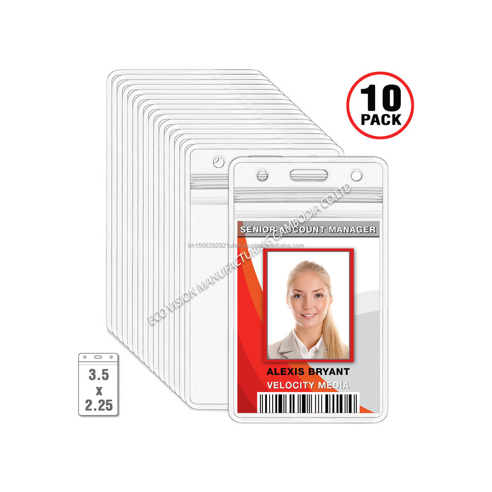 รูปแบบใหม่ราคาขายส่งกันน้ํามืออาชีพพลาสติกใส 10 แพ็คที่กําหนดเอง 3.5 x 2.25 ป้ายแนวตั้งจากกัมพูชา