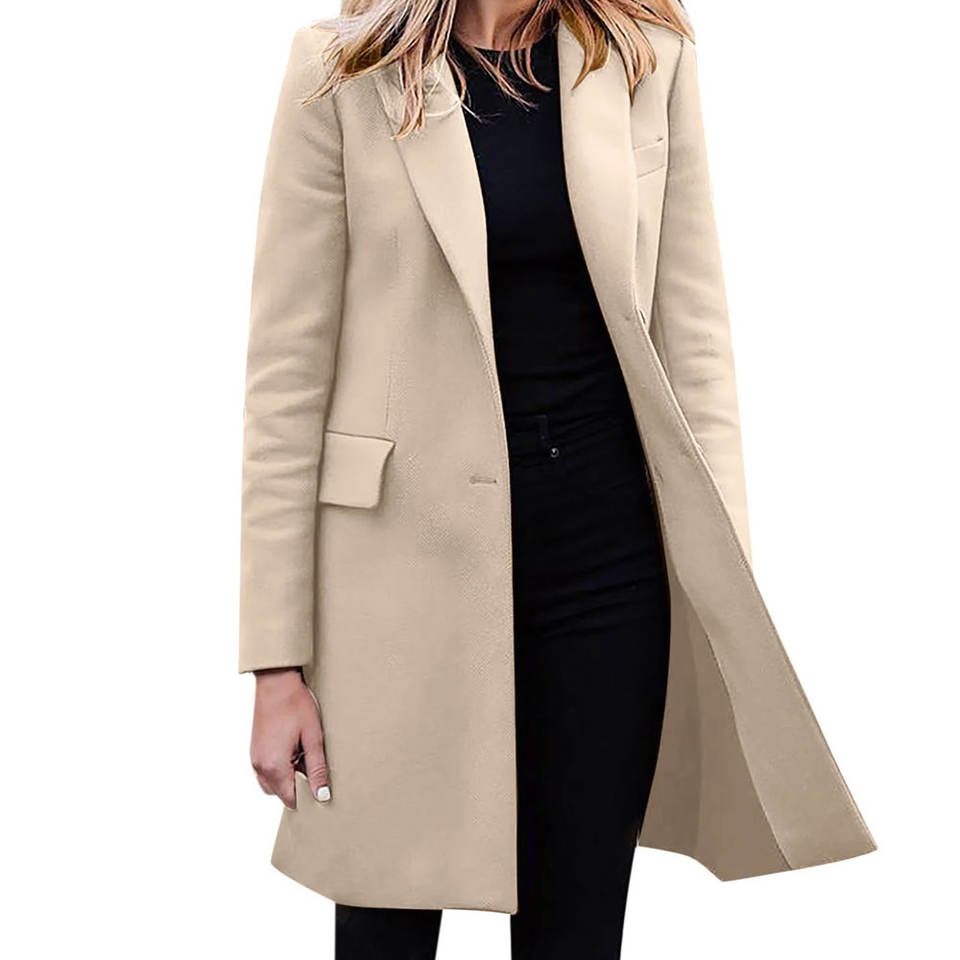 เสื้อโค้ทผู้หญิงสไตล์ใหม่สำหรับฤดูหนาว ผ้าแคนวาสผสมขนสัตว์ สัมผัสนุ่ม ระบายอากาศได้ดี ปิดด้วยกระดุม ซับในผ้าฝ้าย สวมใส่ง่าย