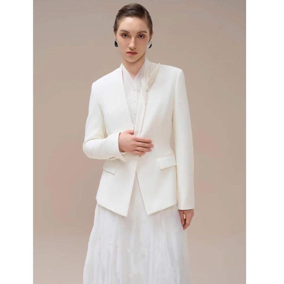 New Style Women Blazers Long-Sleeved Hazel Single-Breasted Collarless Blazer Vietnam Women Winter Clothes In Whiteant