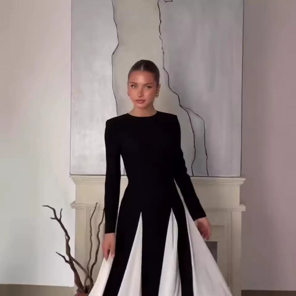 เดรสยาวสไตล์ใหม่สำหรับผู้หญิง ดีไซน์หรูหรา เหมาะสำหรับงานปาร์ตี้ งานแต่งงาน แบบเรียบง่าย แต่งสีตัดกัน ทรงเข้ารูป