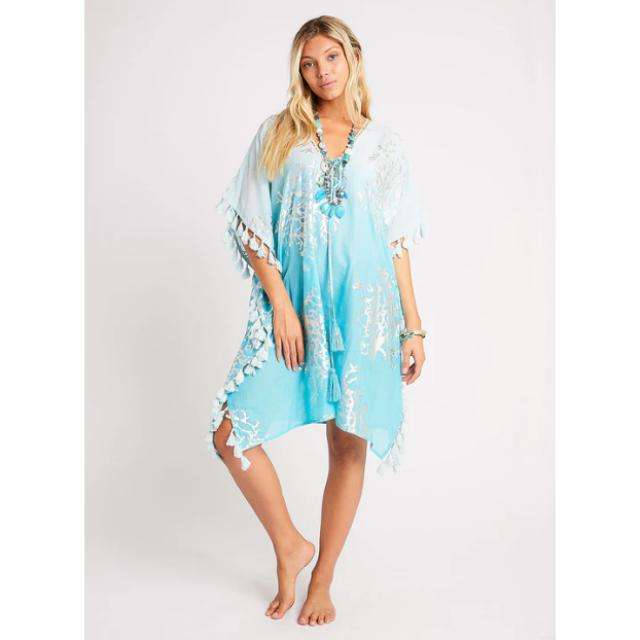 ชุดเดรสแม็กซิกันสำหรับผู้หญิงชุดเดรสคอวีแขนสามส่วนพิมพ์ลายดิจิตอลสีทองความยาวคลุมเข่าสำหรับฤดูใบไม้ร่วงสไตล์ใหม่