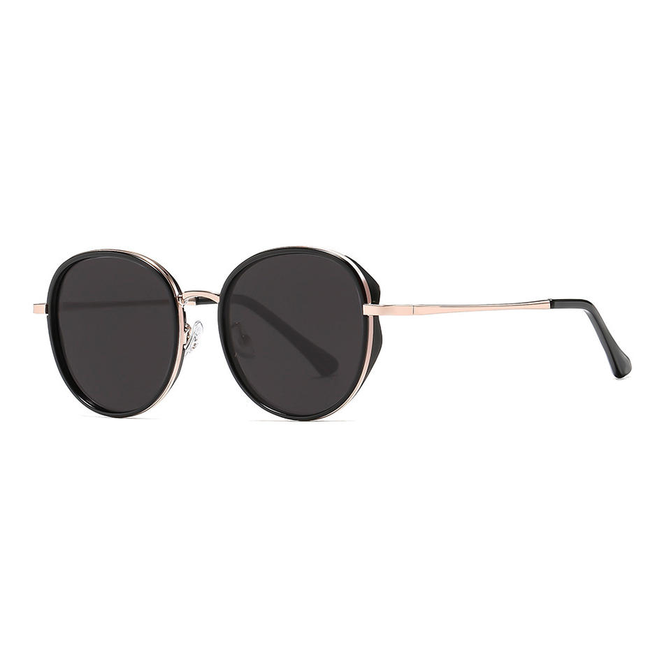 แว่นกันแดดทรงกลมผู้หญิงสไตล์ใหม่ UV400 โพลาไรซ์ TR90 กรอบเลนส์ TAC สีดำอเนกประสงค์ป้องกันแสงแดด