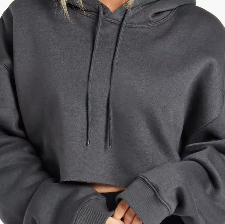 เสื้อฮู้ดครอปของผู้หญิงสไตล์ใหม่เสื้อครอปแบบมีฮู้ดเสื้อครอปของโรงงานผลิตตามสั่ง