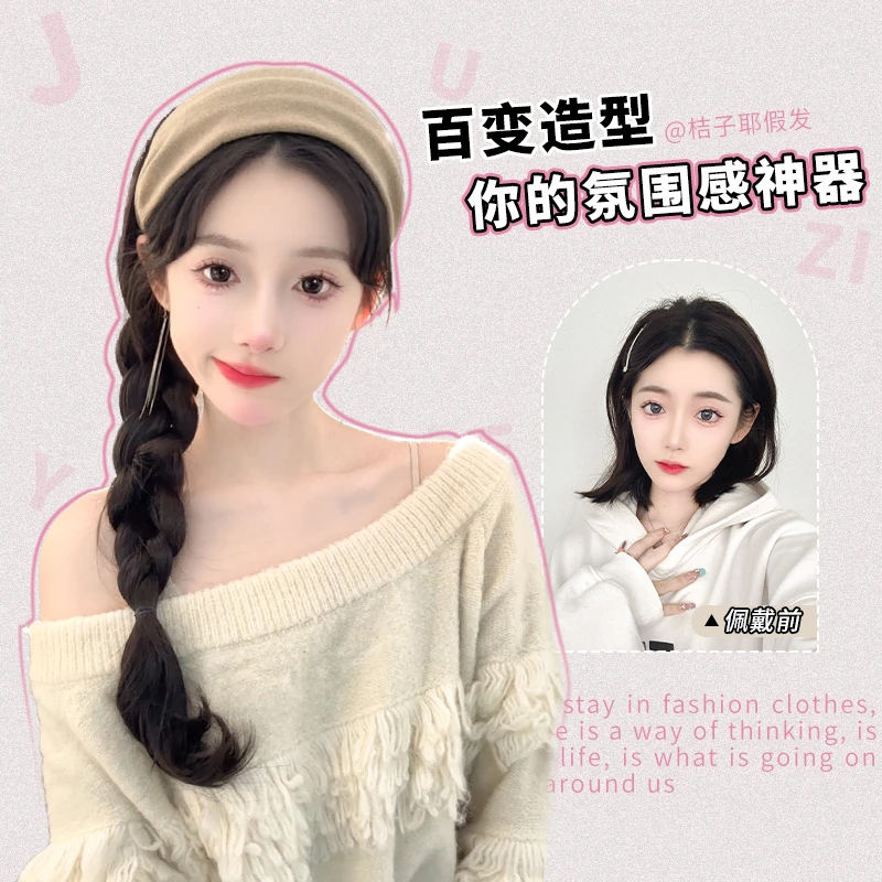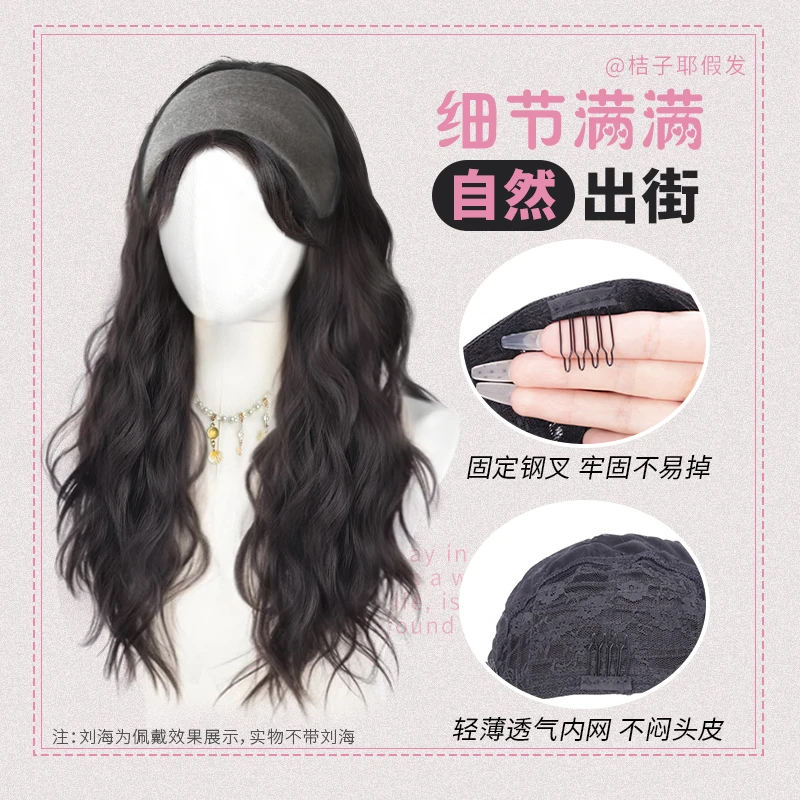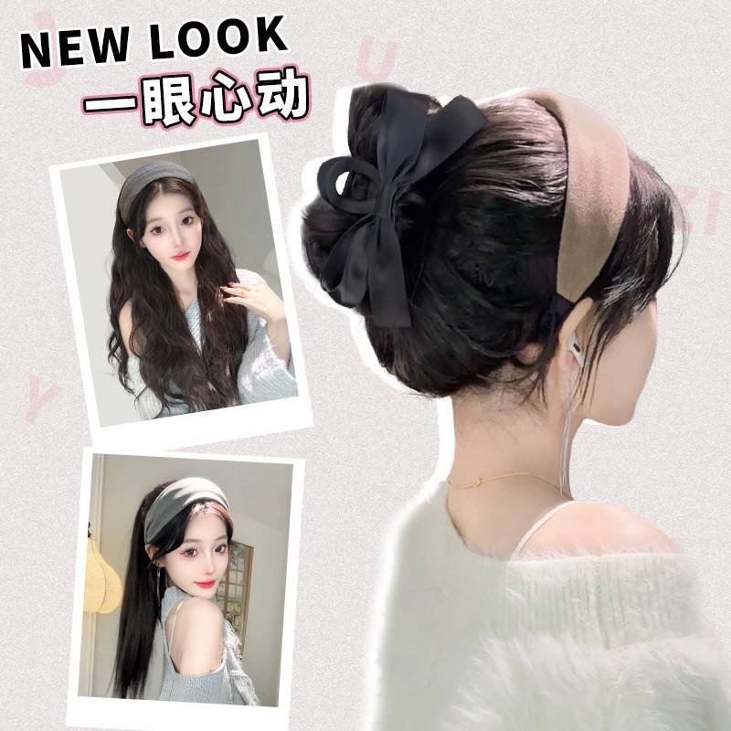 วิกผมครึ่งหัวผู้หญิงสไตล์ใหม่ ผมยาวตรง พร้อมหน้าม้าปัดข้าง ไม่ต้องใช้กาว ทำจากเส้นใยคาเนคาลอน สีเทา พร้อมที่คาดผม