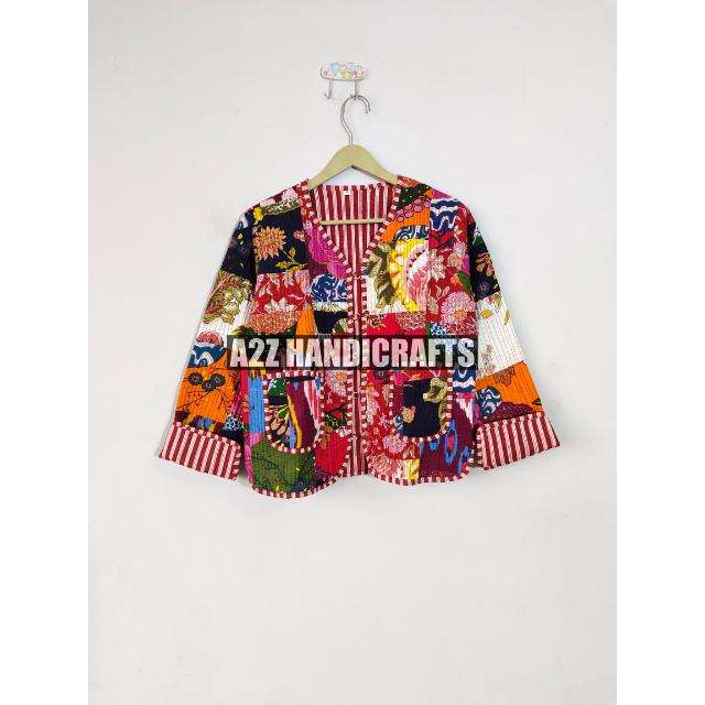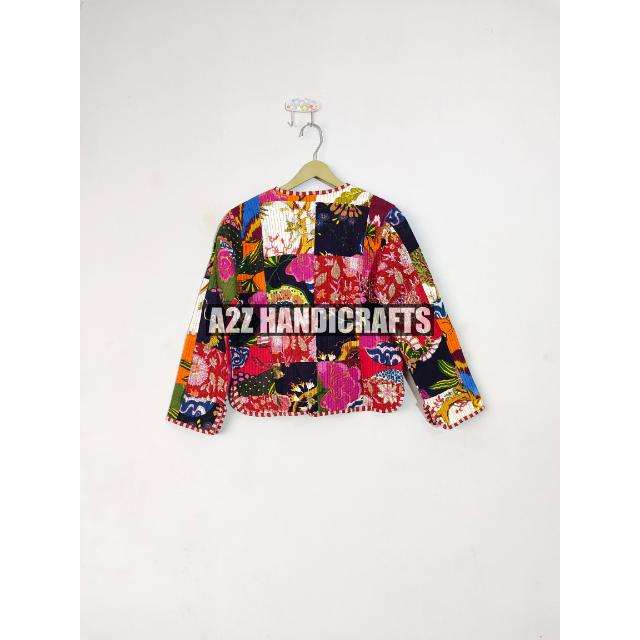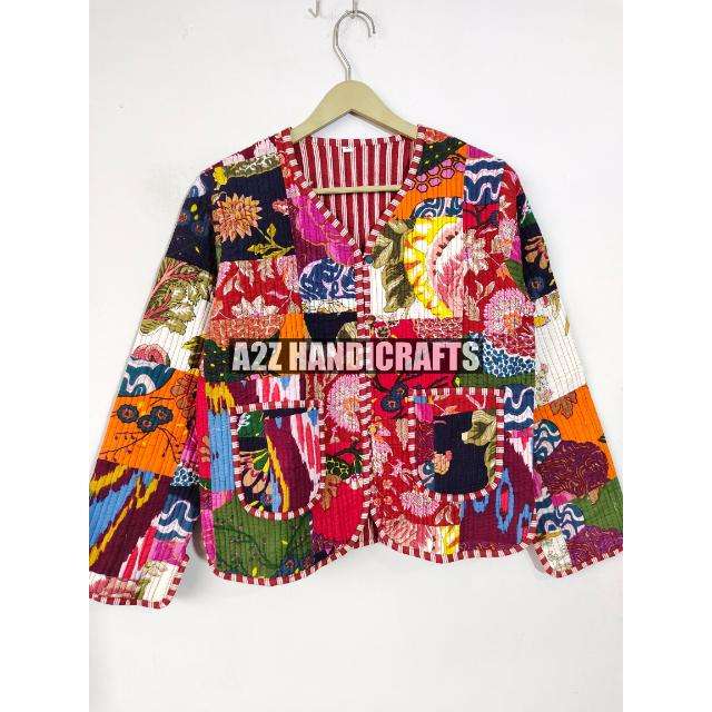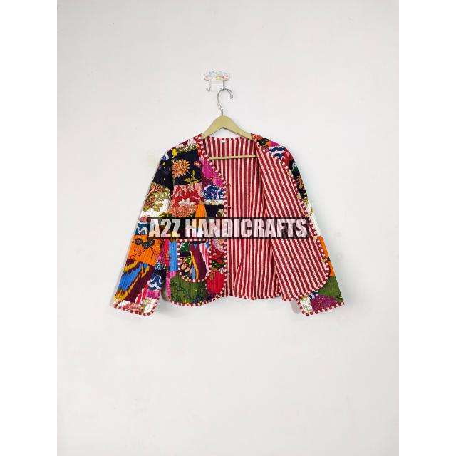 แจ็คเก็ตบุนวมสำหรับผู้หญิงสไตล์ใหม่เสื้อโค้ทผ้าปะต่อสไตล์โบโฮพิมพ์ลายแบบมีกระดุมยาวสั้น-วันหยุด