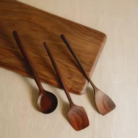 ช้อนไม้สไตล์ใหม่สำหรับทำอาหาร คนอาหาร และเสิร์ฟบนโต๊ะ