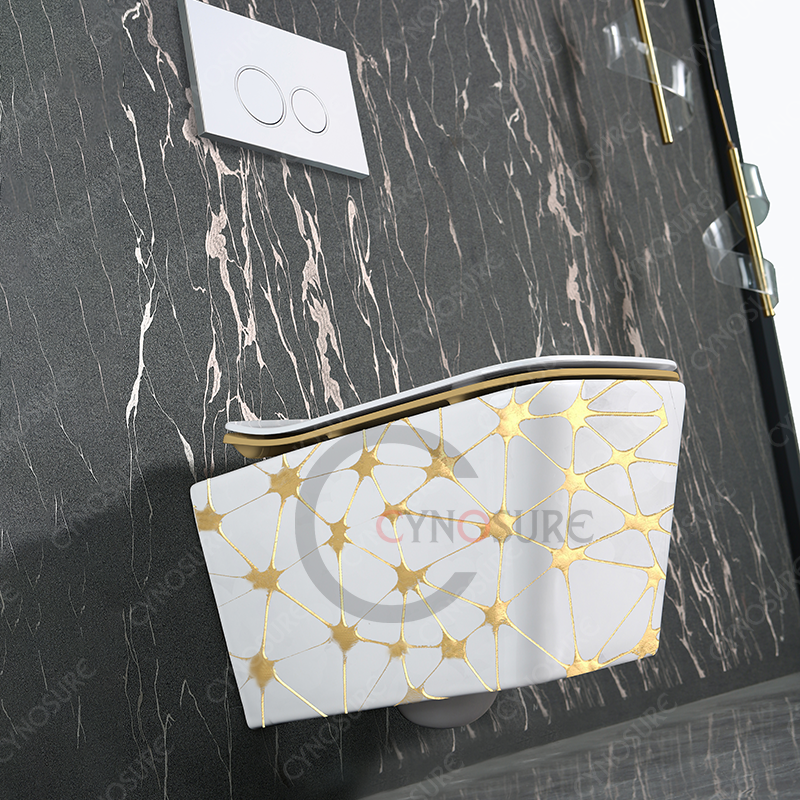 ห้องน้ำอัจฉริยะแบบแขวนติดผนังห้องน้ำอัจฉริยะสีทองแขวนติดผนังเซรามิก WC washdown ผนังชุบทอง