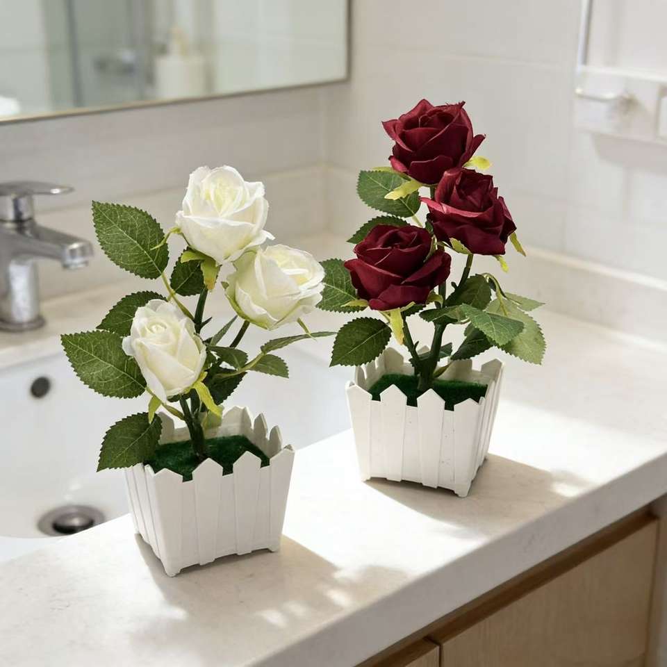 กระถางต้นไม้กุหลาบประดิษฐ์แบบใหม่ ตกแต่งร้านกาแฟและโรงแรม