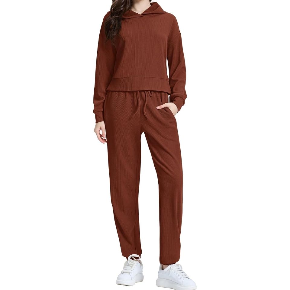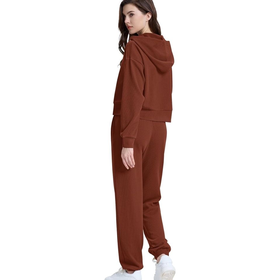 ชุดกีฬาสไตล์ใหม่สำหรับผู้หญิงชุดวอร์มใส่ออกกำลังกายกางเกงทรงหลวมสีพื้นชุดออกกำลังกายแบบลำลอง
