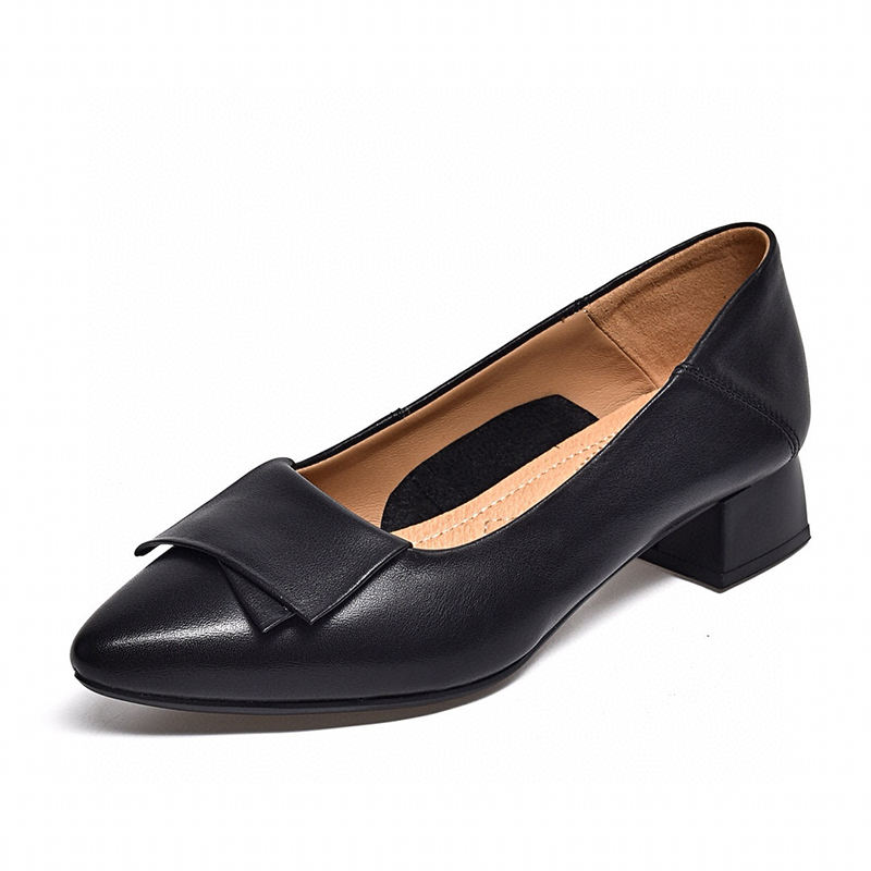 รองเท้าบัลเล่ต์ส้นเตี้ยหนังแท้สำหรับผู้หญิง, รองเท้าส้นเตี้ยปิดปลายเท้าน้ำหนักเบาพิมพ์ลายสไตล์ฤดูใบไม้ร่วงขนาด260มม.