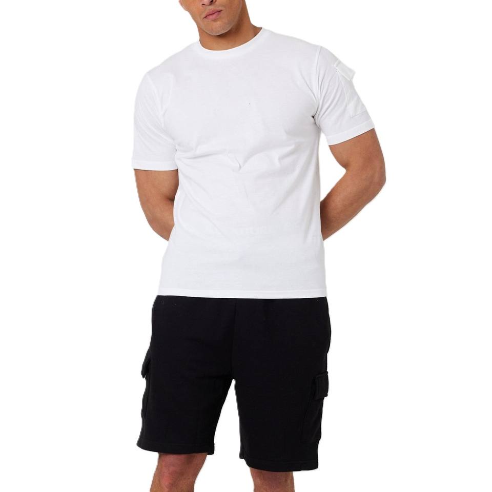 เสื้อยืดและกางเกงขาสั้นชุดเซ็ตคู่สำหรับผู้ชาย ผ้าฝ้ายผสมโพลีเอสเตอร์ ระบายอากาศได้ดี สไตล์ใหม่สำหรับฤดูร้อน แบบลำลอง 2 ชิ้น