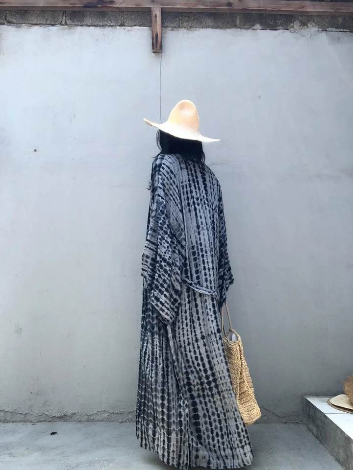 กิโมโนตัวยาวสำหรับผู้หญิง,ผ้าเรยอนย้อมย้อมสำหรับฤดูร้อนปี100%