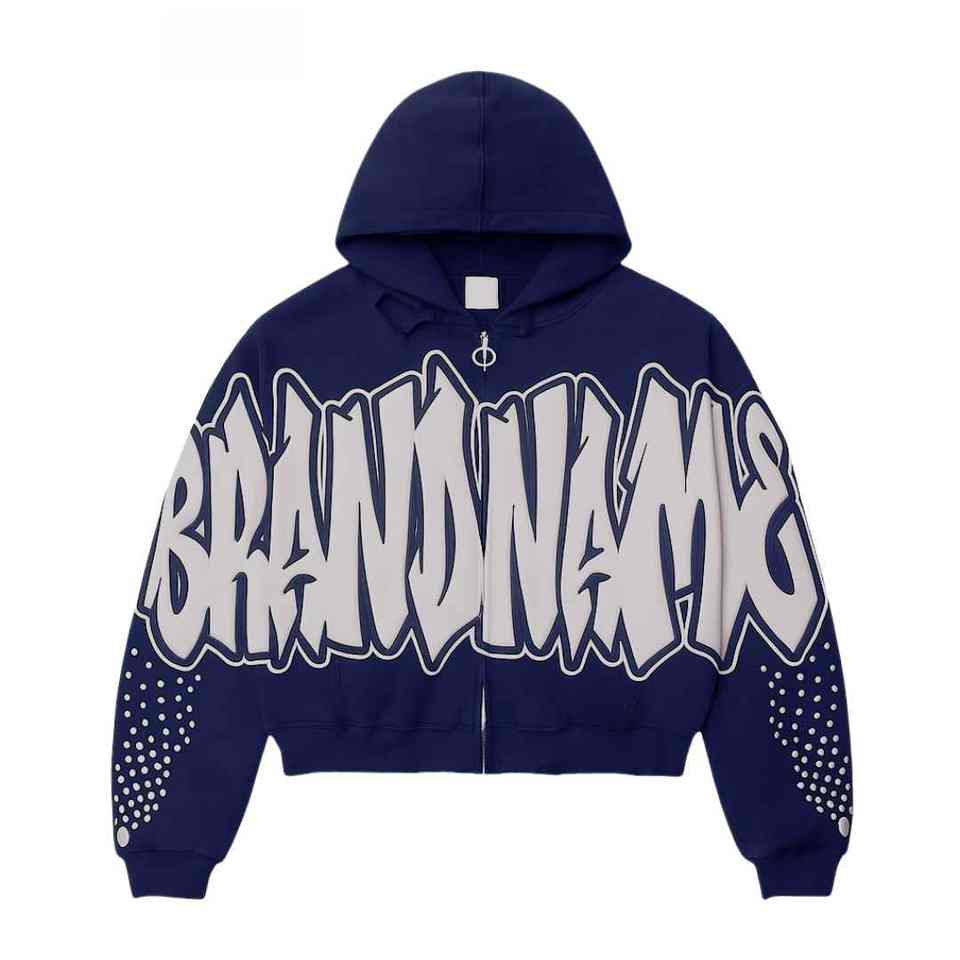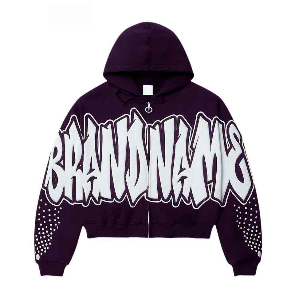 เสื้อฮู้ดดี้แบบมีซิปสำหรับผู้ชาย ดีไซน์ใหม่ทันสมัย พิมพ์ลายโลโก้แบบนูน ผ้าฝ้าย 100% เนื้อหนา