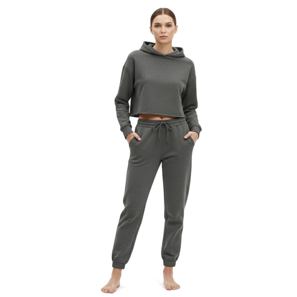New Stylish Custom Logo Solid 100% Cotton Casual Eco-Friendly Tracksuit Crop Tops Hoodies Jogging Sweat Suit 2 Piece Set Women