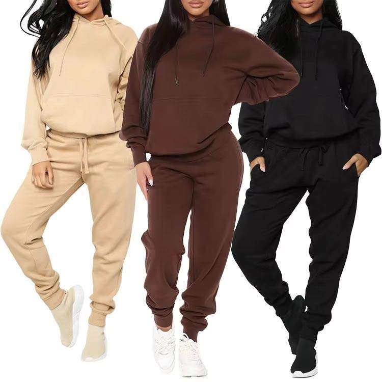 ชุดวอร์มกีฬาแบบใหม่ทันสมัยพร้อมโลโก้สั่งทำ เสื้อครอปฮู้ดดี้และกางเกงวอร์ม ชุดเซ็ต 2 ชิ้น ชุดวอร์มกีฬาสำหรับผู้หญิง