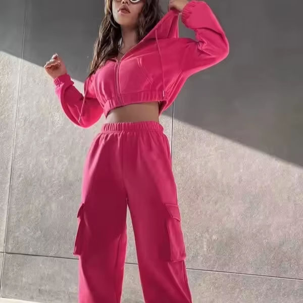 ชุดวอร์ม2ชิ้นสำหรับผู้หญิงเสื้อครอปเปิดไหล่มีสไตล์ออกแบบโลโก้ได้ตามต้องการ
