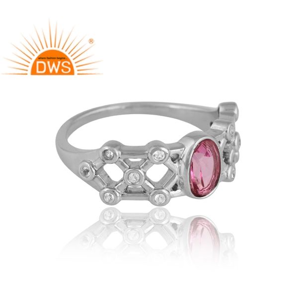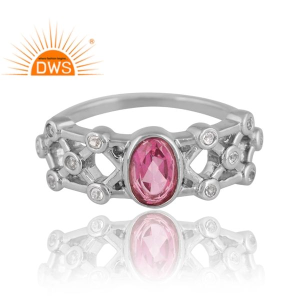 แหวนพลอยบุษราคัมสีชมพูชุบเงินแพลเลเดียมสี925ดีไซน์ใหม่และแหวนพลอยบุษราคัมสีขาวสำหรับผู้หญิงออกแบบได้ตามต้องการ