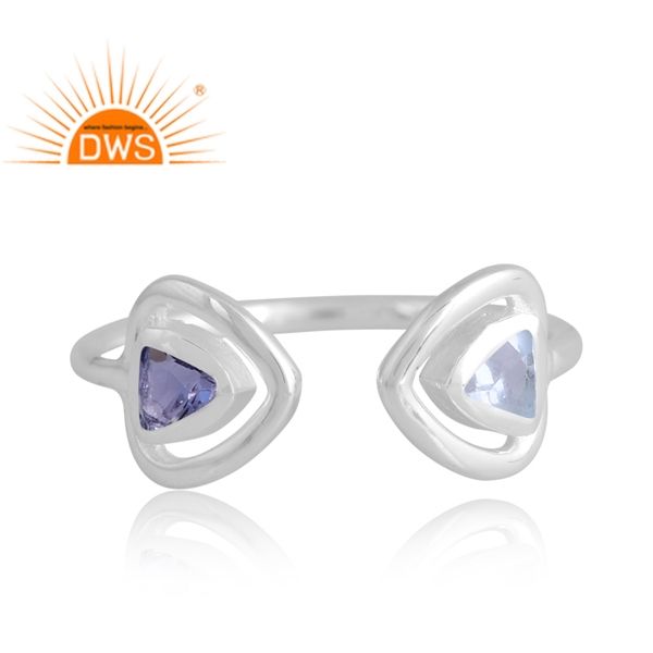 แหวนพลอยบุษราคัมและไอโอไลต์สีฟ้า925เงินสเตอร์ลิงเครื่องประดับดีไซน์ตามสั่งสำหรับเป็นของขวัญสำหรับผู้หญิง