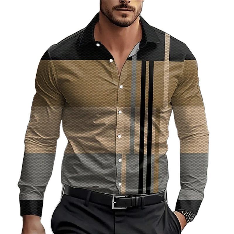 เสื้อเชิ๊ตผู้ชายแขนยาวลำลองพิมพ์ลาย3D เสื้อคอตตอน100% ดีไซน์ใหม่