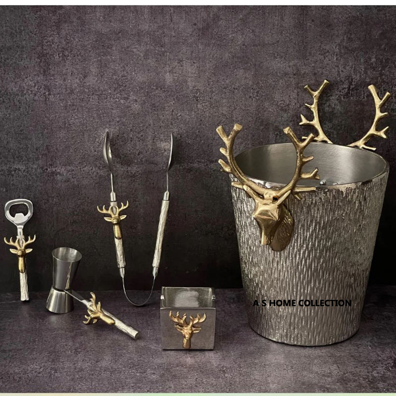 ชุดถังน้ำแข็งแชมเปญโลหะสแตนเลสพร้อมกุหลาบสีทองเงาสำหรับปาร์ตี้และเครื่องดื่มดีไซน์ใหม่