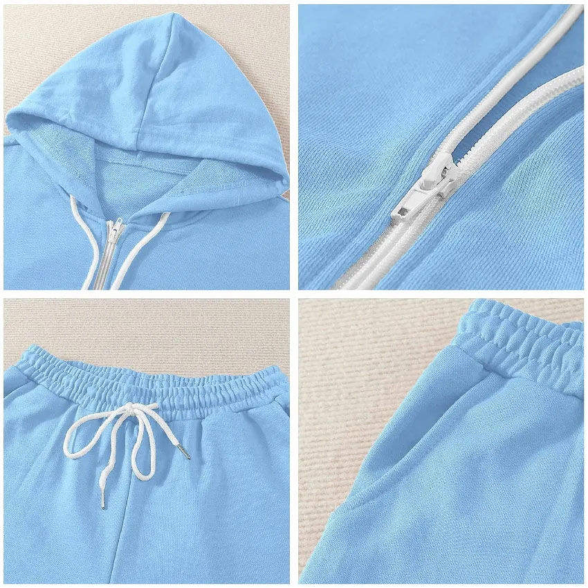 ชุดวอร์มผู้หญิงแบบมีซิป ดีไซน์ทันสมัย เนื้อผ้าอย่างดี ใส่สบาย น้ำหนักมาก แบบสองชิ้น ซิปเต็มตัว