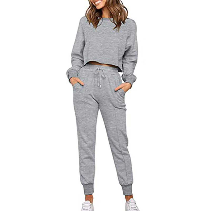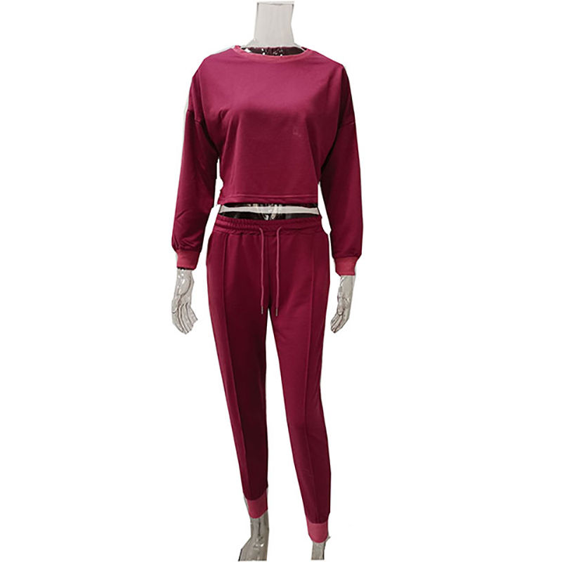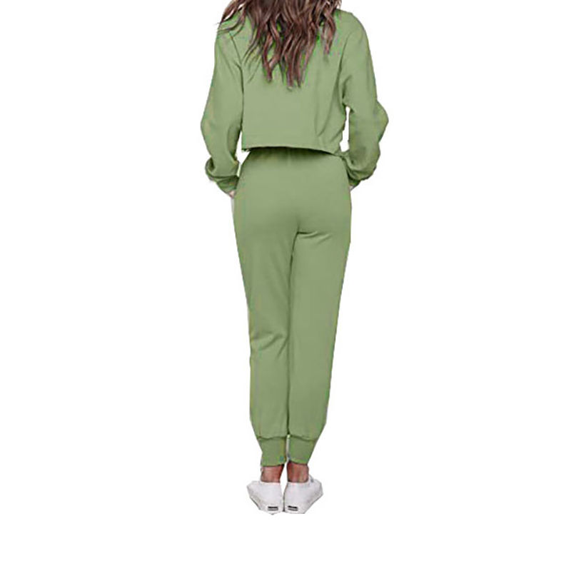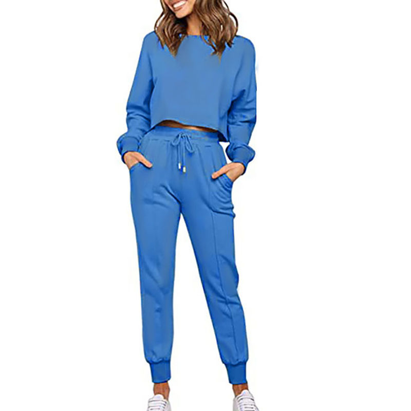 ชุดเซ็ต 2 ชิ้น สไตล์ใหม่ ทันสมัย สำหรับผู้หญิง เสื้อครอปท็อปสีพื้น & กางเกงจ็อกเกอร์ พร้อมเสื้อสเวตเชิ้ตคอกลม สำหรับฤดูหนาว