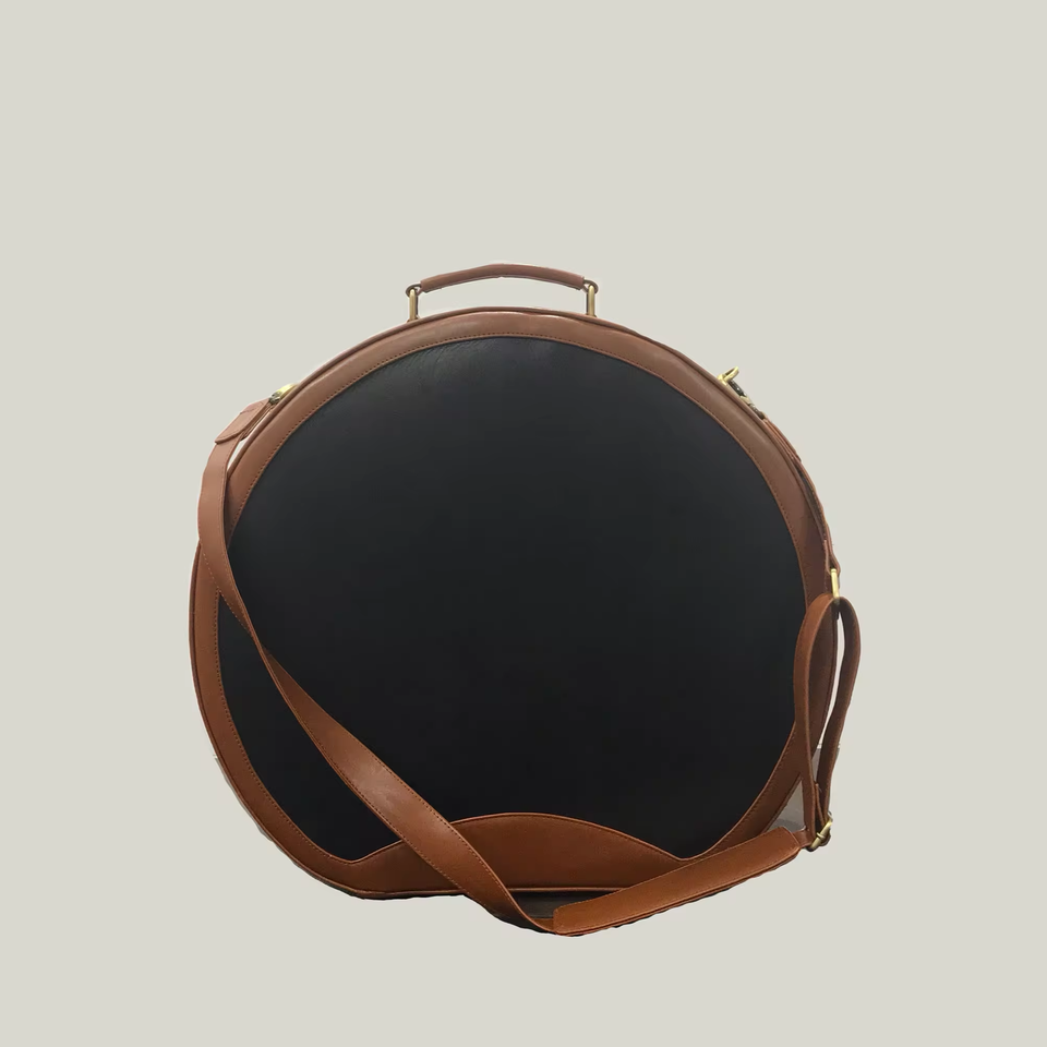ใหม่สไตล์หนังวัวแท้แบบกําหนดเองแบบพกพากล่องหมวกกลมหมวกC Arrierกรณีหมวกกระเป๋าเดินทางพร้อมสายสะพายไหล่สําหรับUnisex