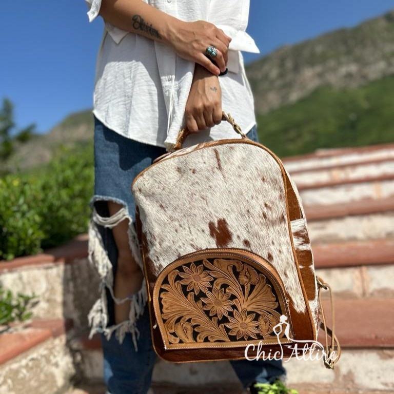 Product name:Hand Tooled Cowhide Leather Women Backpack