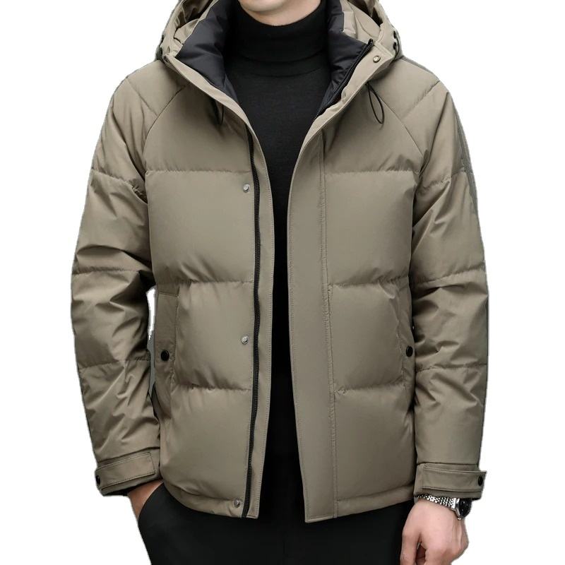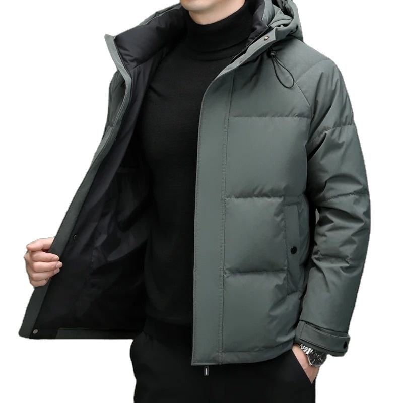แจ็กเก็ตขนเป็ดมีฮู้ดของผู้ชายเสื้อแจ็คเก็ตมีซิปแบบลำลองระบายอากาศได้ดีผลิตได้ตามต้องการ