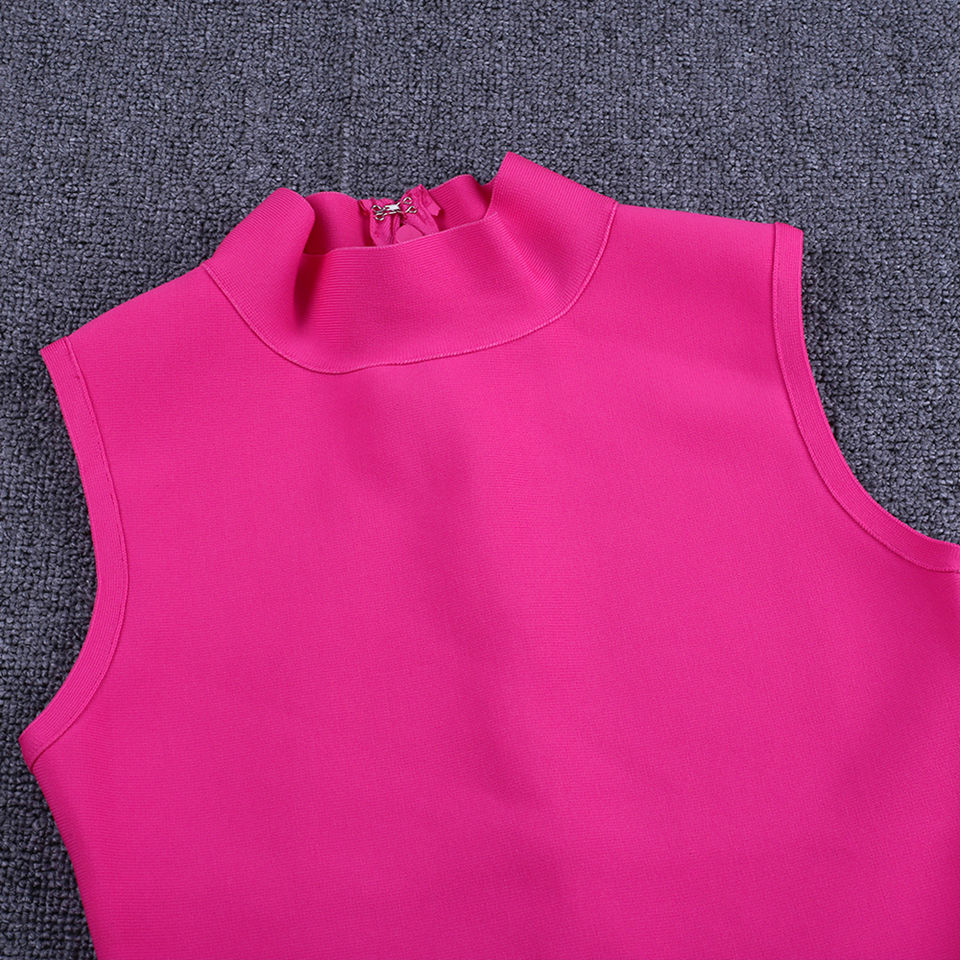 เดรสแขนกุดสีสันสดใสสไตล์ใหม่สำหรับผู้หญิง คอเต่า ทรงเข้ารูป ผ้าพันแผล เซ็กซี่ เหมาะสำหรับงานปาร์ตี้และงานเลี้ยงอาหารค่ำ