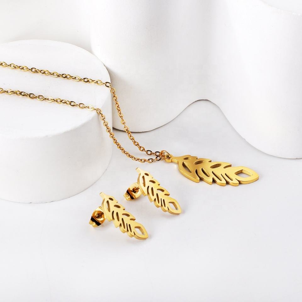 ชุดเครื่องประดับสแตนเลสทรงใบไม้ ดีไซน์ทันสมัย ชุบทอง 18K สำหรับผู้หญิง
