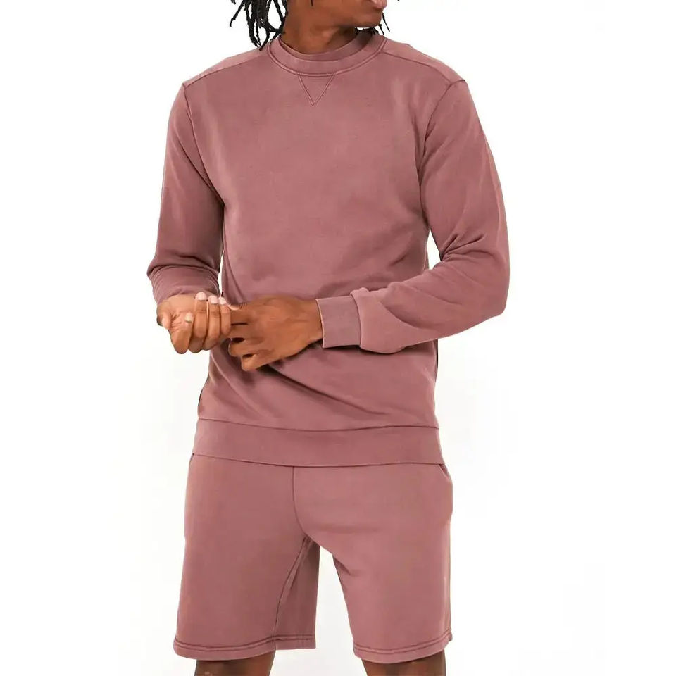 ชุดเสื้อยืดและกางเกงขาสั้นแบบใหม่ทันสมัย สไตล์ลำลอง ลายเรียบ ผ้าฝ้ายฟลีซ 100% สำหรับผู้ชาย สำหรับอุตสาหกรรมการผลิตเสื้อผ้า