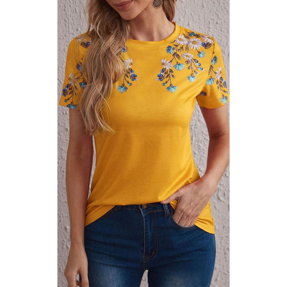 เสื้อยืดแฟชั่นคอกลมสไตล์เรียบง่าย
