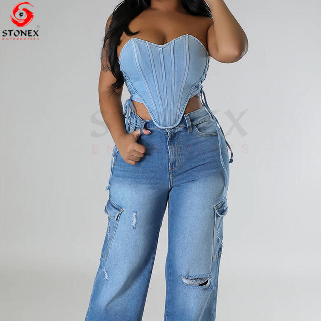 คีย์เวิร์ด:ชุดผ้ายีนส์แบบร่วมสำหรับผู้หญิง