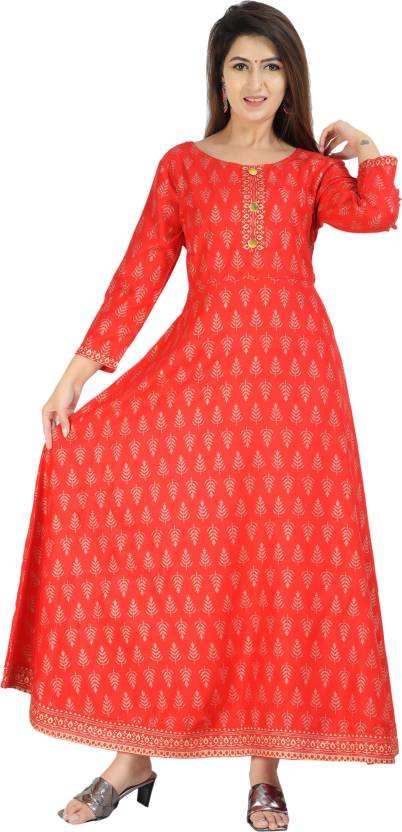 ชุด Rayon anarkali salwar Kurtis พิมพ์ลายสไตล์ใหม่สำหรับผู้หญิงเสื้อผ้าสไตล์อินเดียและปากีสถาน
