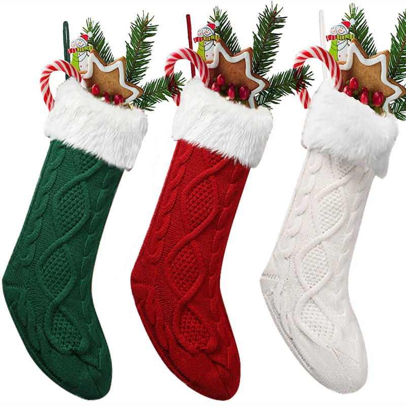 ถุงเท้าถักมือสำหรับคริสต์มาสพิมพ์ลายใหม่ถุงเท้าผ้ากำมะหยี่สำหรับตกแต่งเทศกาลคริสต์มาสลูกกวาด
