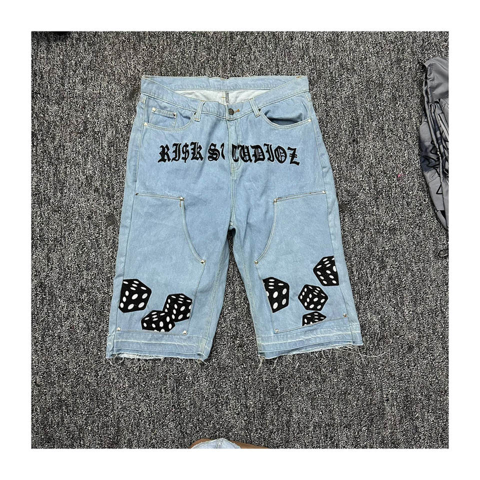 กางเกงยีนส์ขาสั้นลำลองผู้ชายสำหรับฤดูร้อนใหม่ เป็นมิตรกับสิ่งแวดล้อม ระบายอากาศได้ดี แห้งเร็ว ลายพิมพ์ทั้งตัว สไตล์สตรีทแวร์