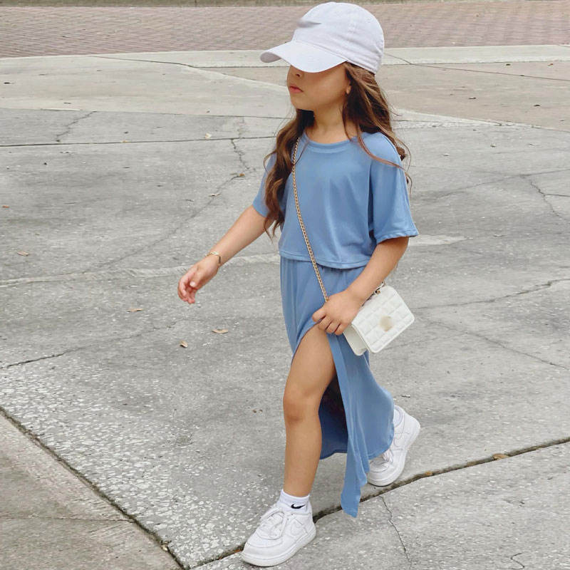 ชุดเสื้อผ้าเด็กผู้หญิงสำหรับฤดูร้อนใหม่ ชุดเด็กวัยหัดเดินสำหรับฤดูร้อน 2022 ฤดูใบไม้ร่วง อายุ 1-6 ปี ชุดเด็กผู้หญิง 2 ชิ้น