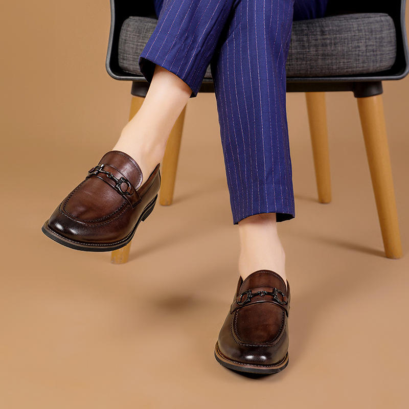 คอลเลคชั่นฤดูร้อนใหม่ รองเท้าโลฟเฟอร์หนังแท้สไตล์วินเทจอังกฤษสำหรับผู้ชาย พร้อมห่วงรัดแบบ D-Ring สวมใส่สบาย