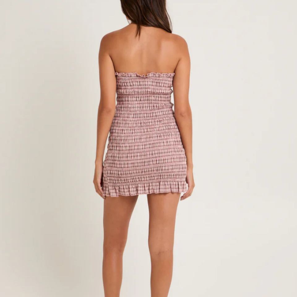 เดรสลายสก็อตผูกโบว์สไตล์คันทรี่ แบรนด์ใหม่สำหรับฤดูร้อน ดีไซน์หวานซ่อนเปรี้ยว ผ้าฝ้าย สายเดี่ยว ทรงมินิเดรสสำหรับงานปาร์ตี้