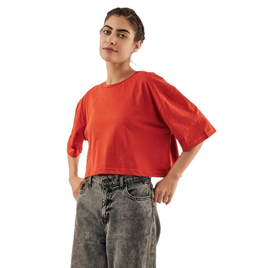 เสื้อยืดครอปสำหรับผู้หญิงเสื้อยืดคอกลมเข้ารูปผ้าคอตตอนสีแดงดีไซน์ใหม่สำหรับฤดูร้อนป้ายโลโก้ขนาดพิเศษออกแบบได้ตามที่ต้องการ